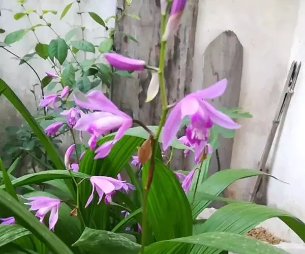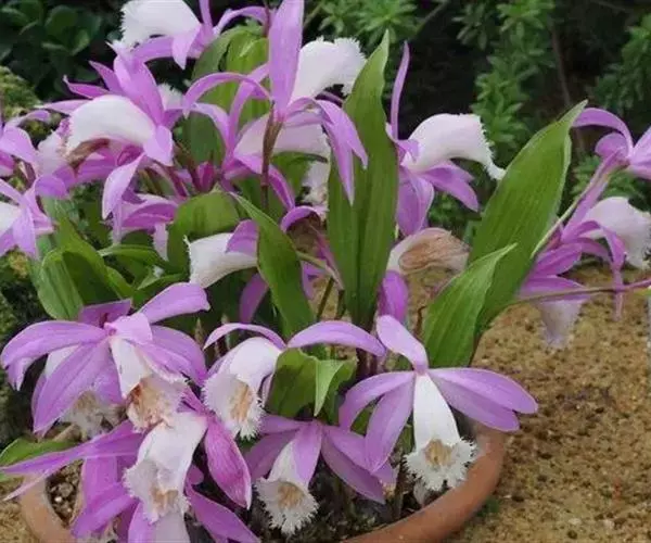白及,中药名。为兰科植物白及Bletilla striata( Thunb.) Reichb.f.的干燥块茎。每年9~10月当茎叶枯萎时采挖,除去须根,洗净,置沸水中煮或蒸至无白心,晒至半干,除去外皮,晒干。