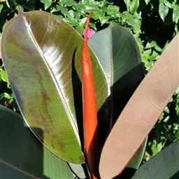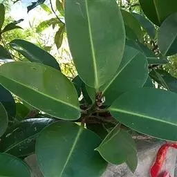 印度榕,别名橡皮树,桑科榕属多年生常绿乔木植物。株高30米;树皮灰白色,平滑;叶厚革质,…