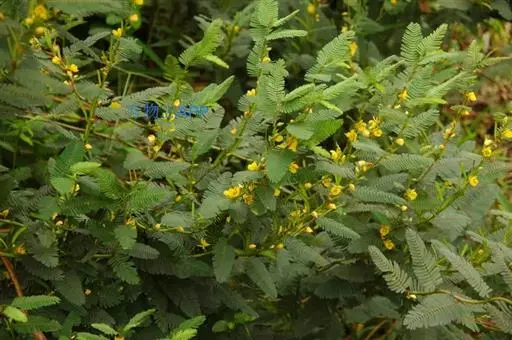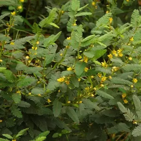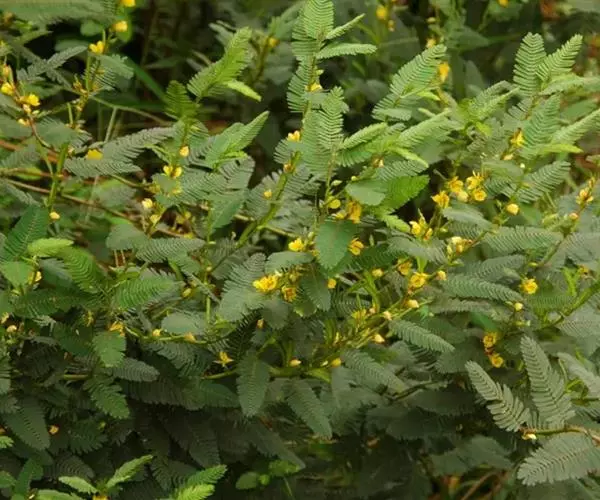 含羞草决明(学名:Cassia mimosoides Linn. )是豆科,决明属多年生亚灌木状披散草本植物,高可达75厘米,枝条、叶柄、叶轴疏柔毛。小叶对生,线状镰形,顶端有小凸尖,基部近圆形;托叶线状锥形,花腋生,总状花序;总花梗顶端有小苞片;萼片卵状长圆形,顶端渐尖,花瓣黄色,卵形,花药长圆形;子房无柄,荚果扁平而直,8-9月开花;10-12月结果。
