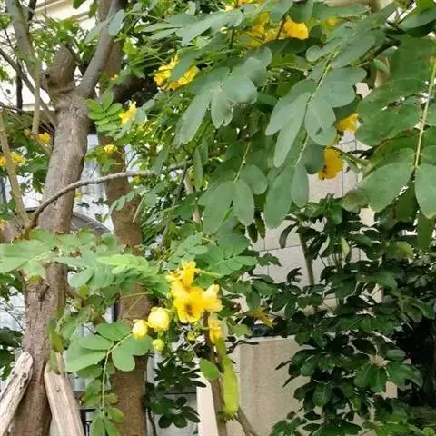 腊肠树:落叶乔木,高可达15米;枝细长;树皮灰色,老时粗糙,暗褐色。叶长30-40厘米,小叶对生,…