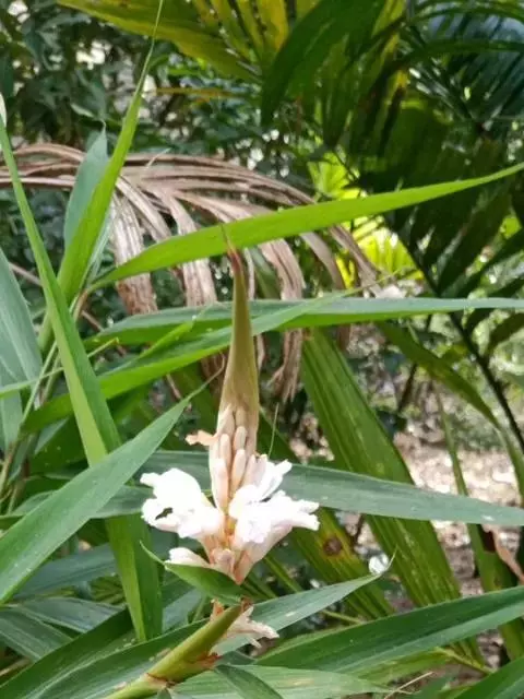 密苞山姜是姜科,山姜属多年生草本植物,株高可达1.5米。叶片椭圆状披针形,顶端渐尖,并具细尾尖,基…
