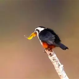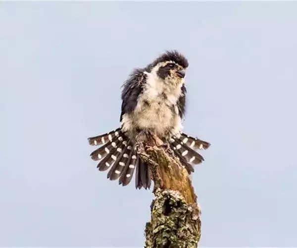 2016年9月21日,来自中国各地的“鸟友”云集婺源拍摄珍稀鸟类。面对镜头,国家二级保护动物白腿小隼毫不怯场,卖萌的神态惹人怜爱。说其可爱,是因为它的模样有点像大熊猫,所以人们称它为“熊猫鸟”、会飞的“熊猫”。 鸟类专家告诉江南都市报全媒体记者,它大小和麻雀相仿,却能猎杀比它大几倍的猎物,号称世界上最小猛禽。白腿小隼数量极少,国外已难觅其芳踪,国内也只有婺源留住了这近濒危的鸟类,已被列入联合国《濒危野生动物名录》。婺源县加大珍稀鸟类保护力度,给来自世界各地鸟类爱好者提供了极好的观赏、拍摄机会,当地群众也从良好的生态环境中分享到“生态红利”。
