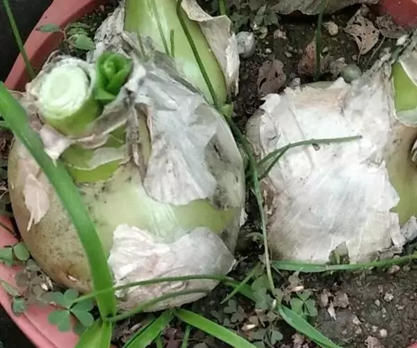 鳞茎卵球形,表面光滑,绿色,具膜质鳞茎皮,直径可达10厘米。 [1-2]