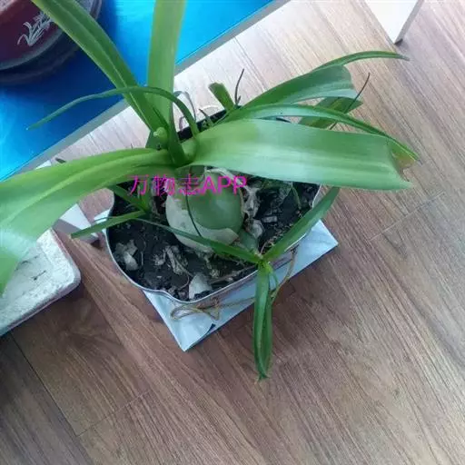 叶基生,5-6枚,带状或长条状披针形,有时稍带肉质,端部尾状长尖,长30-60厘米,宽2.5-5厘米,先端尾状并常扭转,常绿,近革质。 [1-2]