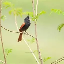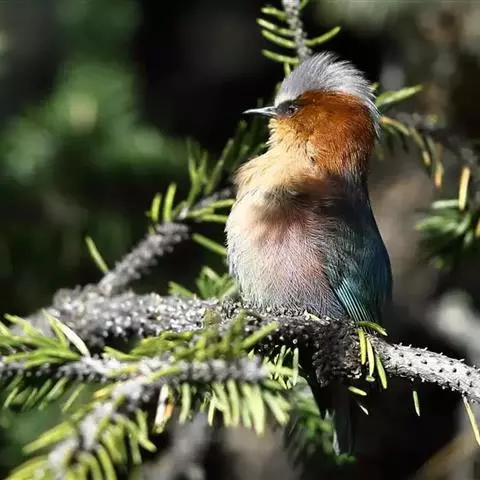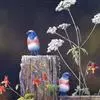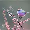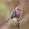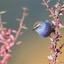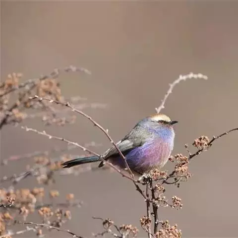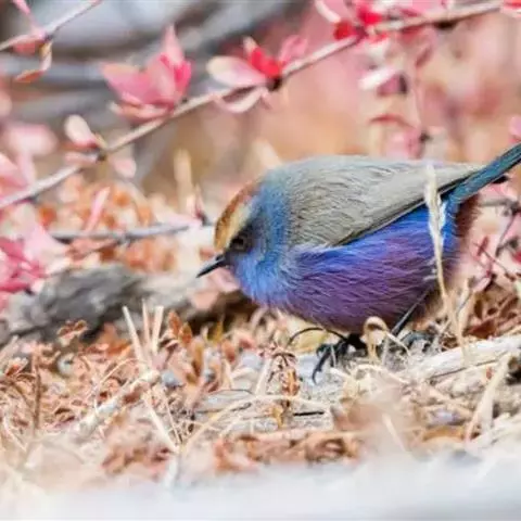 凤头雀莺:小型鸟类。体长9-10厘米,雄鸟呈毛茸茸的紫色和绛紫色,顶冠淡紫灰色,额及凤头白色,尾全蓝。…
