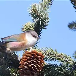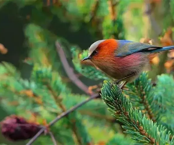 凤头雀莺(学名:Leptopoecile elegans):小型鸟类。体长9-10厘米,雄鸟呈毛茸茸的紫色和绛紫色,顶冠淡紫灰色,额及凤头白色,尾全蓝。雌鸟喉及上胸白,至臀部渐变成淡紫色,耳羽灰,一道黑线将灰色头顶及近白色的凤头与偏粉色的枕部及上背隔开。与花彩雀莺的区别在凤头显著,尾无白色,头顶灰色。叫声轻柔的唧唧叫声及尖似鹪鹩的吱叫。