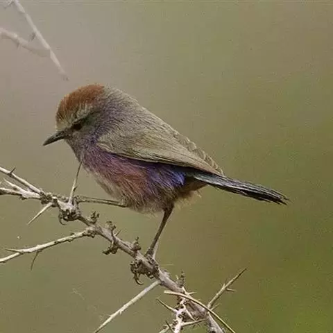 花彩雀莺:体长9-12厘米,是一种毛茸茸偏紫色的雀莺。顶冠棕色,眉纹白。尾长,羽毛松软。…
