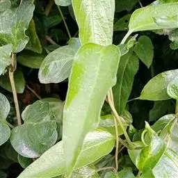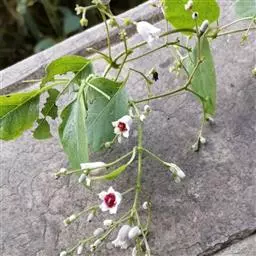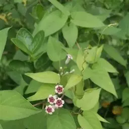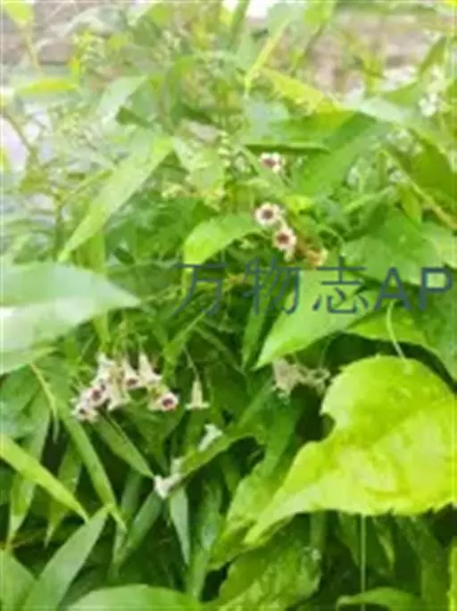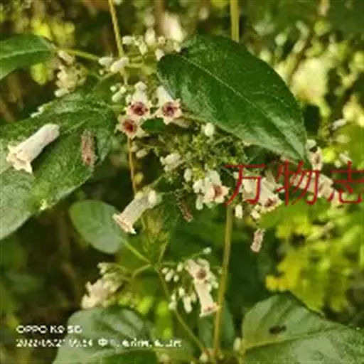 鸡屎藤,多年生草质藤本。其茎呈扁圆柱形,稍扭曲,无毛或近无毛,老黄牛茎灰棕色,直径3 鸡屎藤 -12mm,栓皮常脱落,有纵皱纹及叶柄断痕,易折断,断面平坦,灰黄色;嫩茎黑褐色,直径 1-3mm,质韧,不易折断,断面纤维性,灰白色或浅绿色。叶对生,多皱缩或破碎,完整者展平后呈宽卵形或披针形,长5-375px,宽2-150px,先端 尖,基部楔形,圆形或浅心形,全缘,绿褐色,两面无柔毛或近无毛;叶柄长1.5-175px,无毛或有毛。聚伞花序顶生或腋生,前者多带叶,后者疏散少花,花序轴及花均被疏柔毛,花淡紫色。其喜温暖湿润的环境,常生于溪边、河边、路边、林旁及灌木林中,常攀援于其他植物或岩石上。