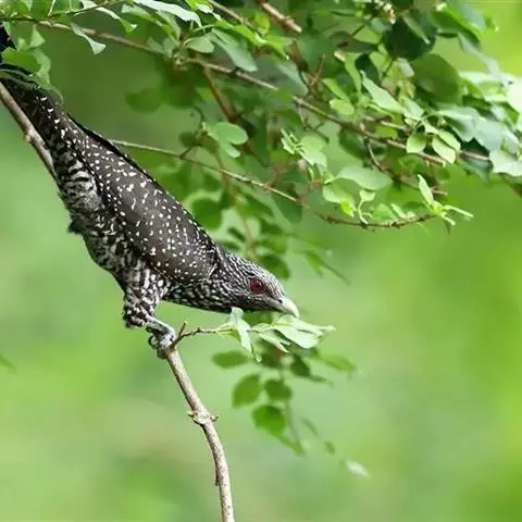 绿嘴地鹃:体形似小鸦鹃,但羽色大致绿灰;嘴绿色,头侧眼的周围有一裸区;后爪弯曲。虹膜赤红色,…
