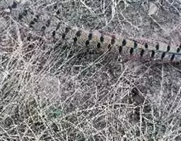 银环蛇 银环蛇全身体背有白环和黑环相间排列,白环较窄,尾细长,体长1,000—1,800mm,具前沟牙的毒蛇。 背面黑色或蓝黑色,具30—50个白色或乳黄色窄横纹;腹面污白色。头背黑褐,幼体枕背具浅色倒“V”形斑。背脊较高,横截面呈三角形,尾末端较尖。头椭圆形,与颈区分较不明显,关背具典型的9枚大鳞片,无颊鳞,背正中一行脊鳞扩大呈六角形;尾下鳞单行。