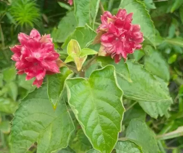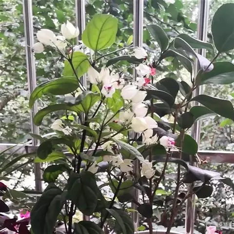 红萼龙吐珠马鞭草科大青属常绿木质藤本。叶对生,纸质,具柄,卵状椭圆形,全缘,先端渐尖,基部近圆形。…