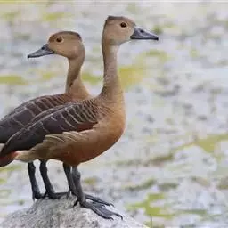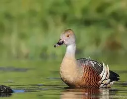 麝鸭:雄性麝鸭是澳大利亚最大的水鸭,具有强壮的体形,羽色黯淡。嘴部有瘤疣附生物,…