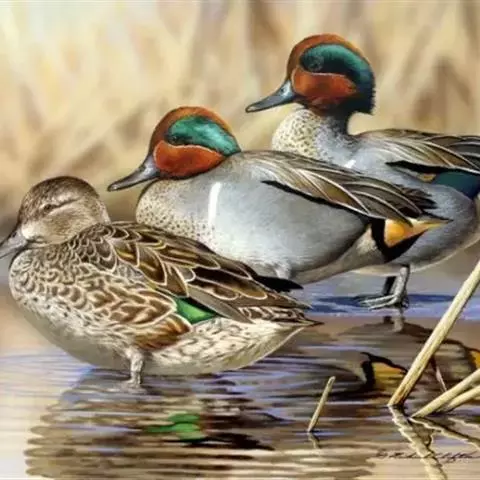 绿翅鸭是小型鸭类,体长37厘米,体重约0.5千克。嘴脚均为黑色。雄鸟头至颈部深栗色,…