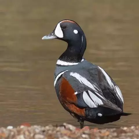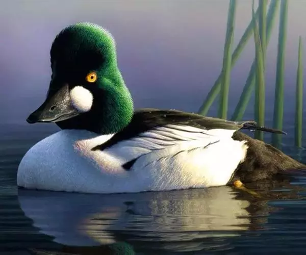 鹊鸭(学名:Bucephala clangula)中型鸭类,体长32-69厘米,体重0.5-1千克。嘴短粗,颈亦短,尾较尖。雄鸭头黑色,两颊近嘴基处有大型白色圆斑。上体黑色,颈、胸、腹、两胁和体侧白色。嘴黑色,眼金黄色,脚橙黄色。飞行时头和上体黑色,下体白色,翅上有大型白斑,特征极明显,容易识别。雌鸟略小,嘴黑色,先端橙色,头和颈褐色,眼淡黄色,颈基有白色颈环;上体淡黑褐色,上胸、两胁灰色;其余下体白色。主要栖息于平原森林地带中的溪流、水塘和水渠中,尤喜湖泊与流速缓慢的江河附近的林中溪流与水塘。泳时尾翘起。白天活动成群游泳在水流缓慢的江河与沿海海面,边游边不断潜水觅食。善潜水,一次能在水下潜泳30秒左右。食物主要为昆虫及其幼虫、蠕虫、甲壳类,软体动物、小鱼、蛙以及蝌蚪等。分布于北美北部、西伯利亚、欧洲中部和北部、亚洲等地。