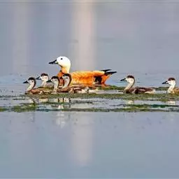栗树鸭体长37-42厘米,体重400-600克,是中等体型的红褐色鸭。头顶深褐,头及颈皮黄色,…