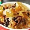 小鸡炖蘑菇是一道东北炖菜。通常是用干蘑菇、鸡肉和粉条一同炖制而成。榛蘑可以衬托出鸡肉的鲜香,粉条滑…