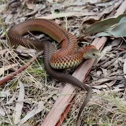 特征:长1.2米。淡灰、淡红色中夹着深浅不一的棕黑色。有些鳞片的边缘呈淡黄色,形成一系列带状环。肚子奶白、微黄,亦有茶绿或灰色。喉及尾下部颜色较浅。分布:大洋洲东南部。附注:毒液毒性很强,是一种非常危险的毒蛇。