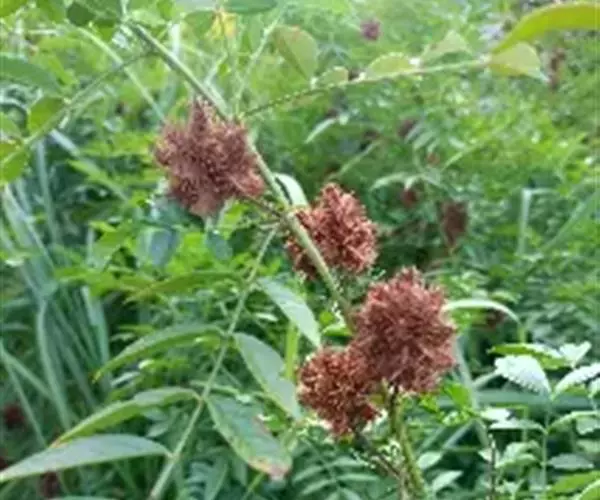 多年生草本。根和根状茎无甜味。茎直立,多分枝,高1-1.5米,具条棱,密被黄褐色鳞片状腺点,几无毛。叶长6-20厘米;托叶披针形,长约5毫米;叶柄无毛,密生腺点;小叶9-15枚,披针形或卵状披针形,长2-6厘米,宽1.5-2厘米,上面深绿色,下面淡绿色,两面均密被鳞片状腺体,无毛,顶端渐尖,具短尖,基部楔形,边缘具微小的钩状细齿。