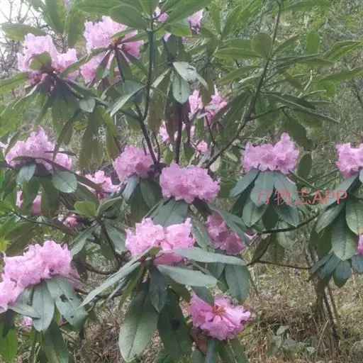 腺果杜鹃(学名:Rhododendron davidii Franch.):常绿灌木或小乔木,高1.5-5米,稀达8米;树皮黄褐色;幼枝绿色,无毛,老枝灰色,顶生冬芽卵形,无毛,叶厚革质,常集生枝顶,长圆状倒披针形或倒披针形,上面深绿色,下面苍白色。顶生伸长的总状花序,有花6-12朵;花冠阔钟形,长3.5-4.5厘米,玫瑰红色或紫红色,有时外面略具腺体,裂片7-8,卵形至圆形。蒴果短圆柱形,褐色。花期4-5月,果期7-8月。