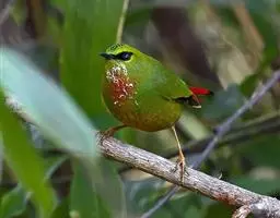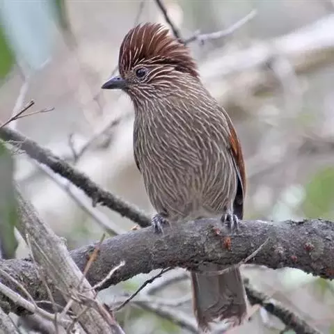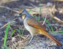 红头穗鹛(学名:Stachyris ruficeps),小型鸟类,体长10-12cm。头顶棕红色,上体淡橄榄褐色沾绿色。下体颏、喉、胸浅灰黄色,颏、喉具细的黑色羽干纹,体侧淡橄榄褐色。主要以昆虫为食,偶尔也吃少量植物果实与种子。常单独或成对活动,有时也见成小群或与棕颈钩嘴鹛或其他鸟类混群活动,在林下或林缘灌林丛枝叶间飞来飞去或跳上跳下。通常营巢于茂密的灌丛、竹丛、草丛和堆放的柴捆上。