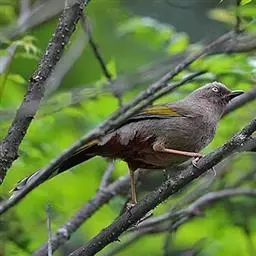蓝翅噪鹛:噪鹛科、彩翼噪鹛属动物。中型鸟类,体长22-25厘米。上体棕橄榄褐色密被黑色鳞状斑,…