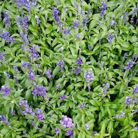 唇 形科鼠尾草属,直立一年生草本,全株具长软毛,株高30~50cm。具长穗状花序,花小,长约12cm,紫、堇、雪青等色。有多数变种,花色美丽。