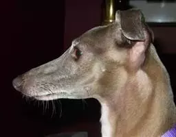 鼻:鼻镜为纯黑色,有些鼻镜或鼻根部呈红棕色。纯白色的陕西细犬允许出现肉红色鼻。鼻梁隆起,似绵羊鼻。其中心线沿着前脸上升到轻微(或没有)的止部,消失在眼睛前面,所以视线清晰,没有任何冲突(陕西猎犬也有不隆鼻的,东非也有隆鼻的,但陕西以隆鼻为佳,所以陕西细犬善品多隆鼻,而东非则无此说。)