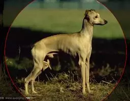后腿及臀部:后肢长,肌肉发达而有力,后腿膝关节适当弯曲,跗关节适当弯曲而贴近地面,公犬睾丸紧贴于大腿两侧,呈前后排列。