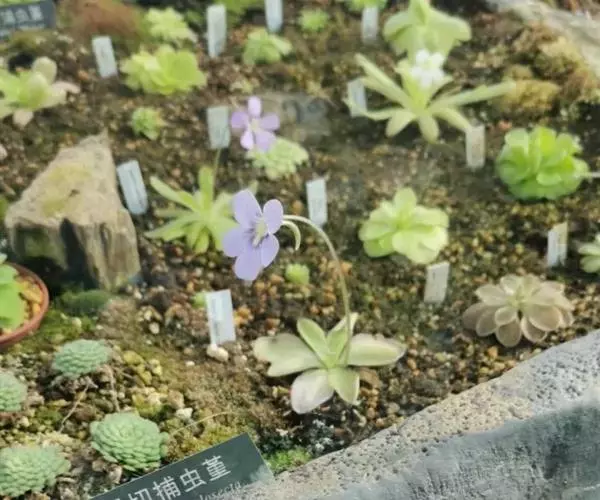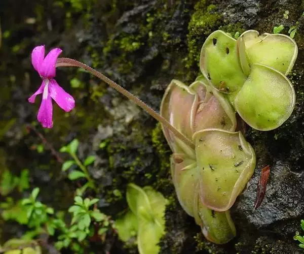 高山捕虫堇(学名:Pinguicula alpina L.)是狸藻科捕虫堇属的一种多年生草本植物,花期5-7月,果期7-9月。这种植物常在中高海拔的阴湿岩壁间或高山杜鹃灌丛下生长。在亚洲、欧洲都有分布,中国在山西、四川、贵州、陕西等省有分布。这种植物能分泌粘液并散发气味诱惑猎物,粘住昆虫后还能分泌消化酶将猎物溶化“吃”掉,因其花朵像一朵朵小莲花,又被称为“美丽杀手”。