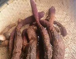 茶树菇一般采用烘烤法干制,烘烤技术与干制品质量密切相关。鲜菇采摘后,最好用阳光先晒半天,按大小分开,除去杂物、蒂头,再将茶树菇的菌褶向下,排放在烤盘上,送到烤房烘烤。温度由低到高,温度过低会使产品腐烂变色,温度过高会把产品烤焦。一般要求烘烤前将烤房预热到40-45 ℃,进料后下降30-35 ℃。晴天采收的菇较干,起始温度可高一点,雨天采收的菇较湿,起始温度应低一点。随着菇的干燥缓慢加温,最后升到60-65 ℃,勿超过75℃,整个烘烤过程,视产品种类与干湿度总需6-10小时。