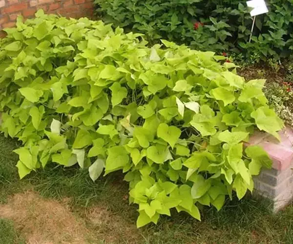 金叶番薯是旋花科、番薯属多年生草本植物。蔓生;叶心形,全缘或有分裂,黄绿色,具柄,嫩叶具绒毛;花单生或组成腋生聚伞花序或伞形至头状花序。具有一定观赏价值,常作为地被栽植或盆栽。