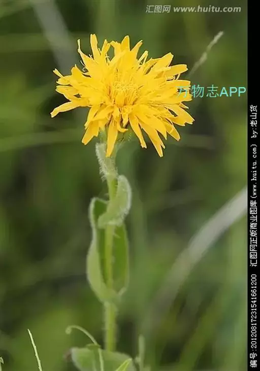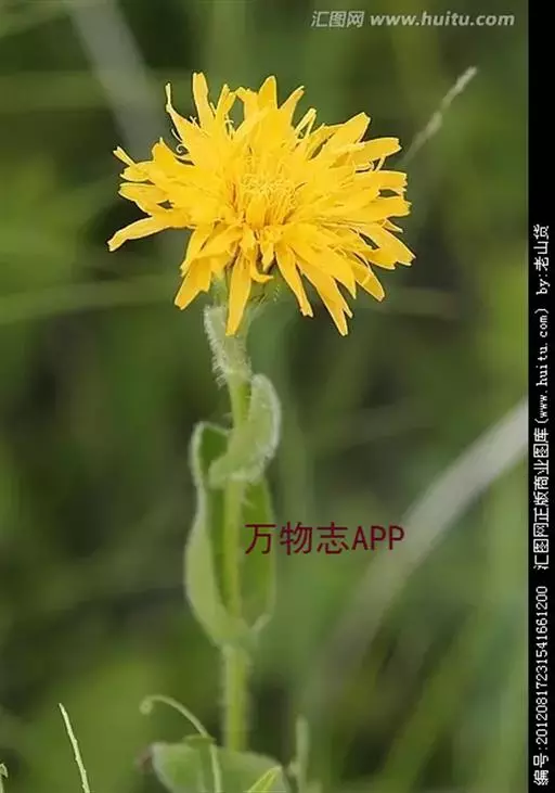 叶互生或基生;头状花序大,有长梗,单生于茎端,全为舌状花,两性,黄色;总苞片3-4层;覆瓦状排列;花序托平坦,有托片;瘦果圆柱状,有纵棱10条,顶端有长喙,喙端有1层羽毛状的冠毛或边缘果无喙,亦无冠毛。