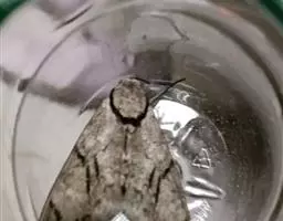 枣桃六点天蛾 体长36~46mm,翅展80~120mm,体及翅灰褐色,复眼黑褐色,触角短栉状浅灰褐色,头胸背中央有一深色纵脉;前翅内横线双线,中横线和外横线为带状、及近外缘部分均黑褐色,近臀角处有1~2个黑斑。后翅粉红色,近臀角处有2个黑斑。