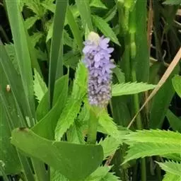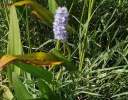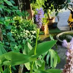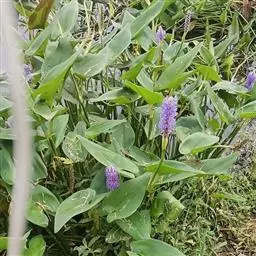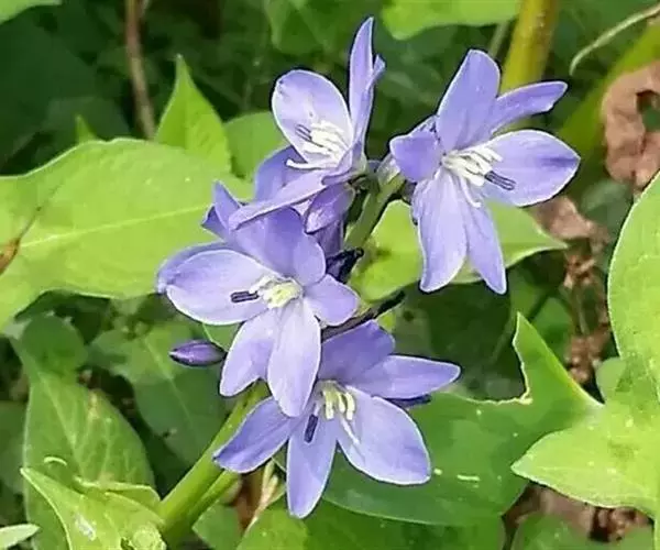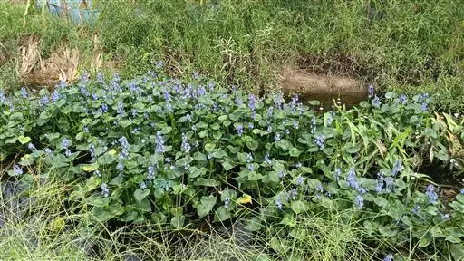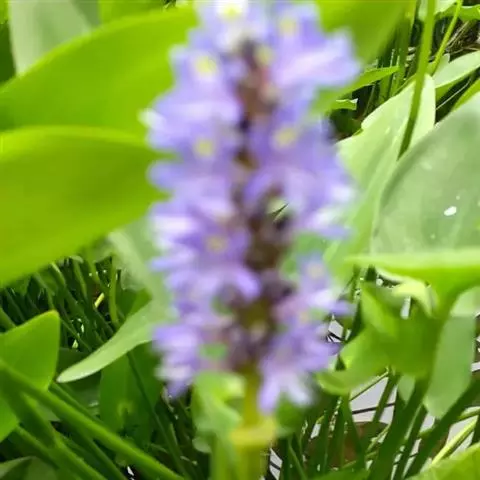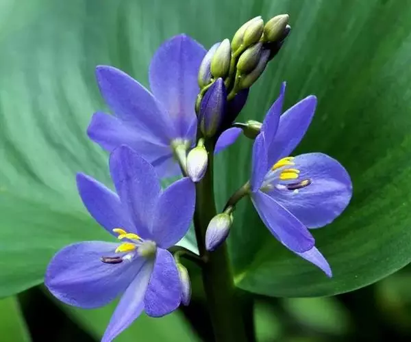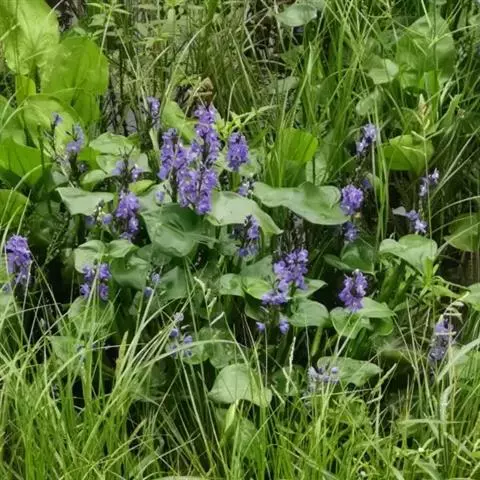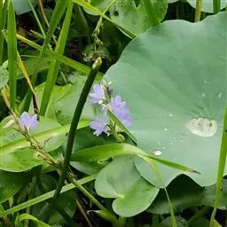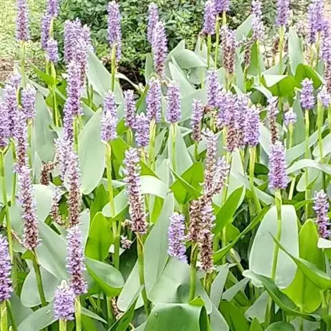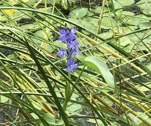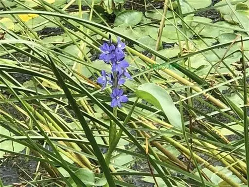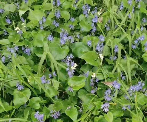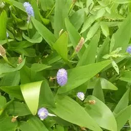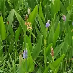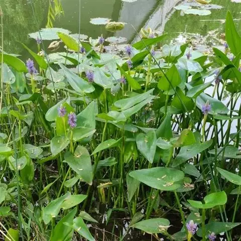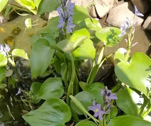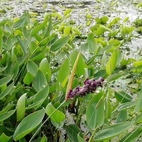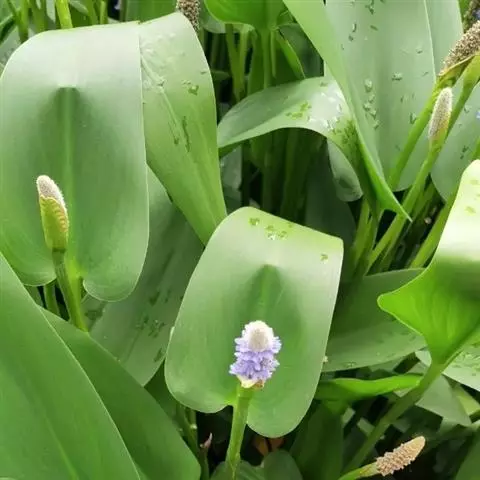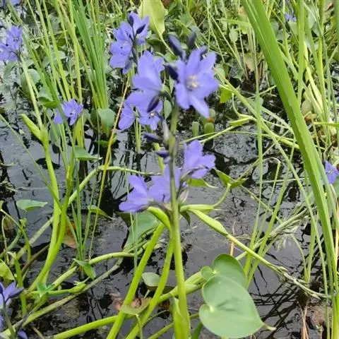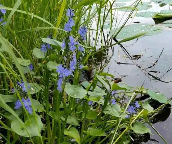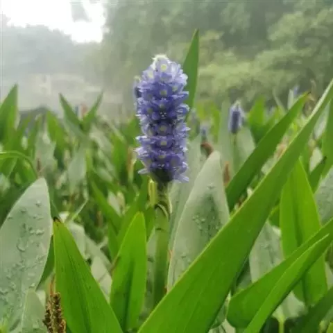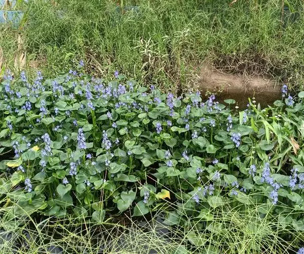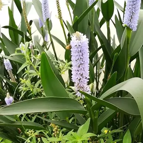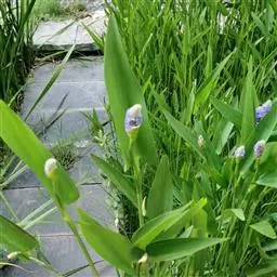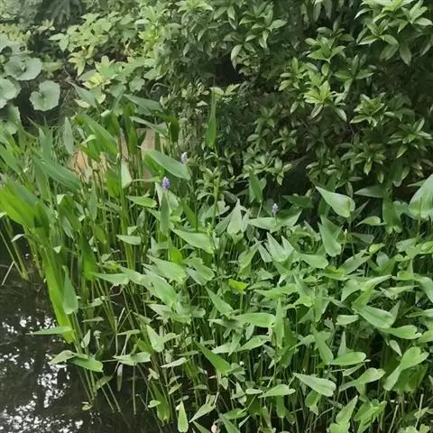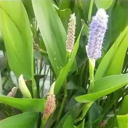 雨久花花大而美丽,淡蓝色,像只飞舞的蓝鸟,叶色翠绿、光亮、素 雅,在园林水景布置中常与其他水生观赏植物搭配使用,单独成片种植效果也好,沿着池边、水体的边缘按照园林水景的要求可作带形或方形栽种。
