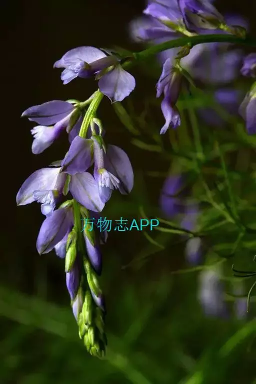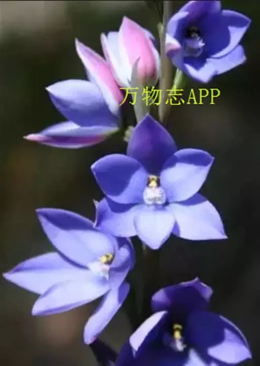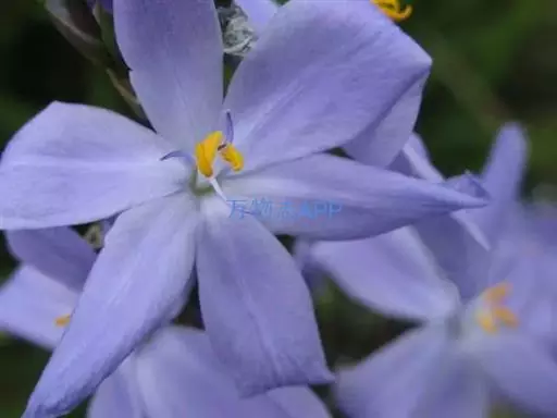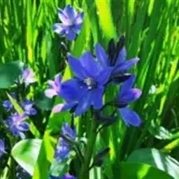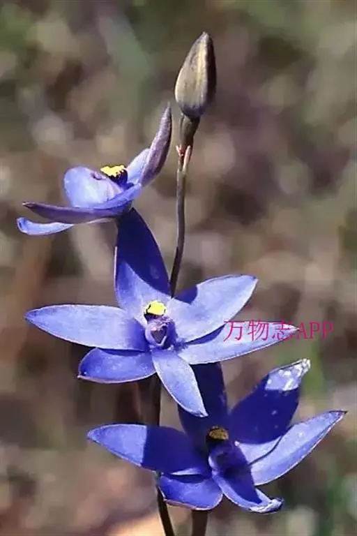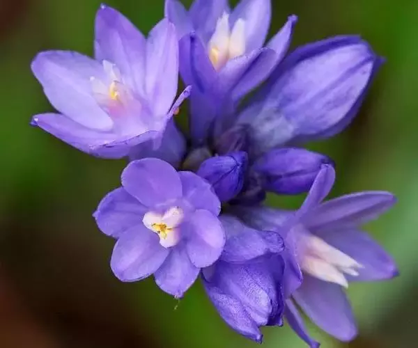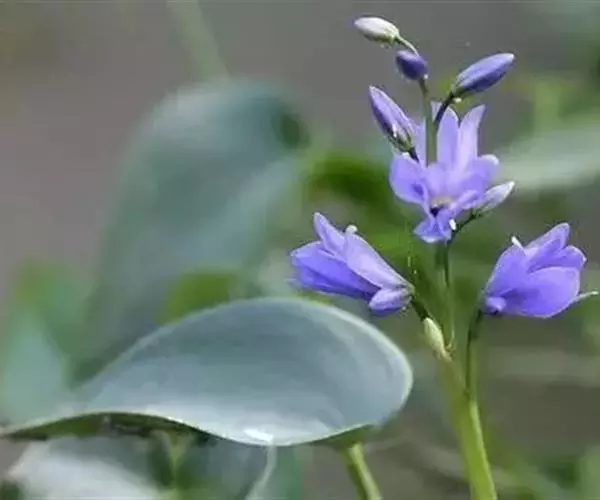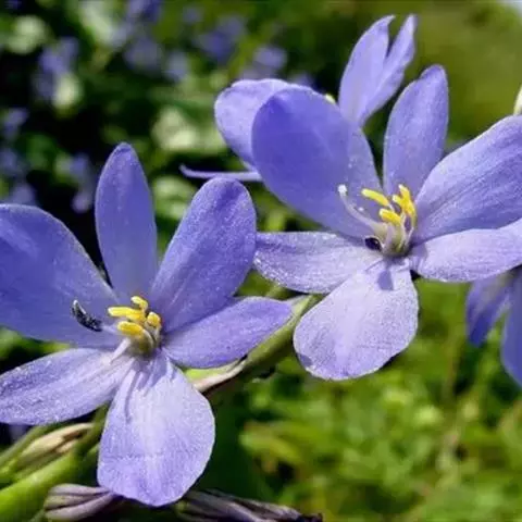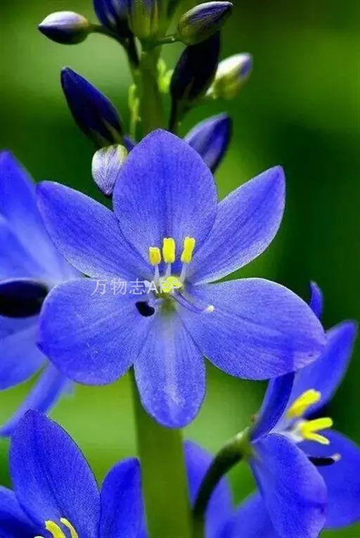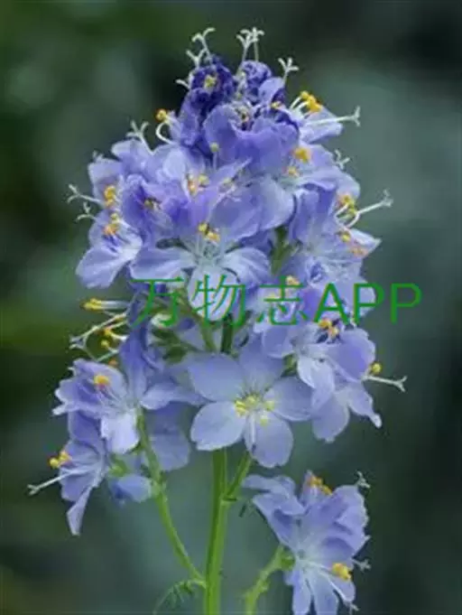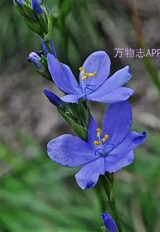 总状花序顶生,有时再聚成圆锥花序;花10余朵,具5-10毫米长的花梗;花被片椭圆形,长10-14毫米,顶端圆钝,蓝色;雄蕊6枚,其中1枚较大,花瓣长圆形,浅蓝色,其余各枚较小,花药黄色,花丝丝状。