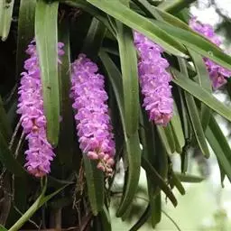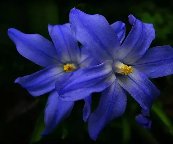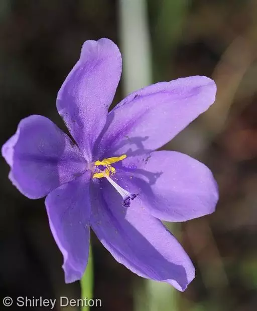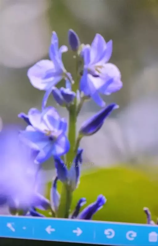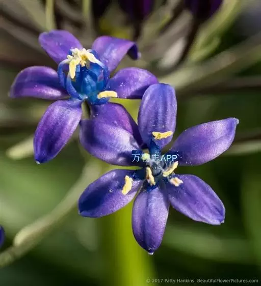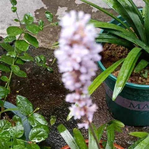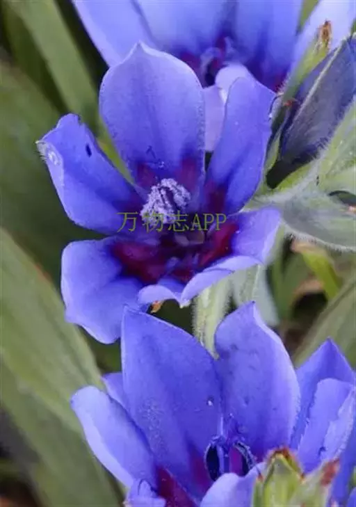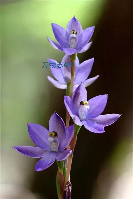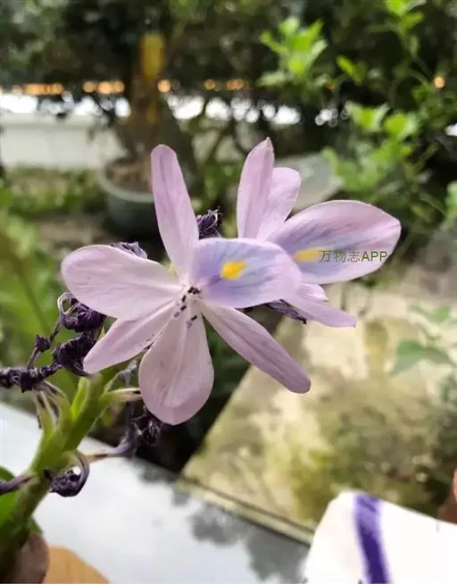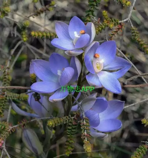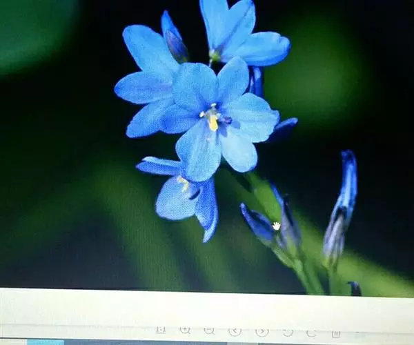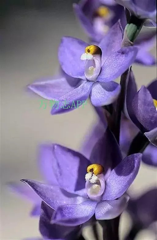 总状花序顶生,有时再聚成圆锥花序;花10余朵,具5-10毫米长的花梗;花被片椭圆形,长10-14毫米,顶端圆钝,蓝色;雄蕊6枚,其中1枚较大,花瓣长圆形,浅蓝色,其余各枚较小,花药黄色,花丝丝状。