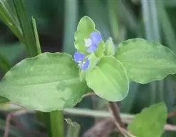 雨久花(学名:Monochoria korsakowii Regel & Maack)直立水生草本;根状茎粗壮,具柔软须根。茎直立,全株光滑无毛,基部有时带紫红色。叶基生和茎生;基生叶宽卵状心形,全缘,具多数弧状脉;叶柄有时膨大成囊状;茎生叶叶柄渐短,基部增大成鞘,抱茎。总状花序顶生,有时再聚成圆锥花序;花具5-10毫米长的花梗;花被片椭圆形,蓝色;雄蕊6枚,花药浅蓝色,花丝丝状。蒴果长卵圆形。种子长圆形,有纵棱。花期7-8月,果期9-10月。