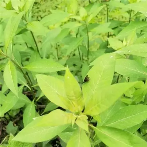 叶对生,茎下部的较小,常成圆形,上部茎叶较大,茎端的2对间距很短,密聚成轮生状,叶片卵形至卵状披针形,长3.5-11厘米,宽1-5.5厘米,先端锐尖或钝,基部楔形或近圆形,边缘具缘毛,两面均被糙伏毛,极密或有时稀疏,密布黑色腺条和腺点,侧脉纤细,不明显;叶柄长1-2.5厘米,密被柔毛。