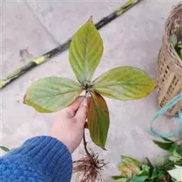 植株较矮小,高6-12厘米。茎基部倾卧,节上生根,自基部分枝。叶卵圆形,有时近圆形,长2-5厘米,宽1.3-3.5厘米,幼时带红色。花期5月。