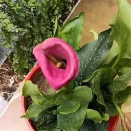 浇水施肥:马蹄莲喜湿润、肥沃土壤,即常说的“大肥大水”,生长期间要多浇水。追肥可用腐熟的豆饼水等液肥与化肥(复合肥或磷酸二铵)轮换施用,每隔2周追施一次。追施液肥时,切忌肥水浇入叶鞘内以免腐烂。以前有人提到:“见花蕾停肥”。经试验对比后,笔者认为见蕾后应增加施肥量,从而保证其花期长,花大而艳,并使花蕾不断,常年开花。