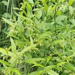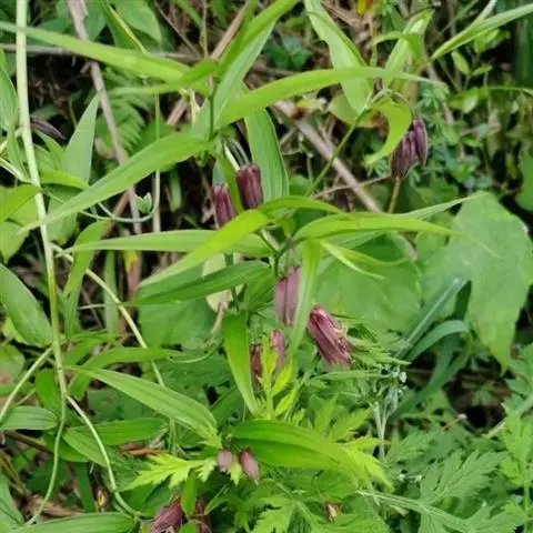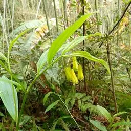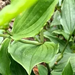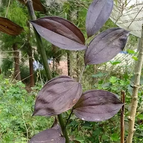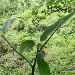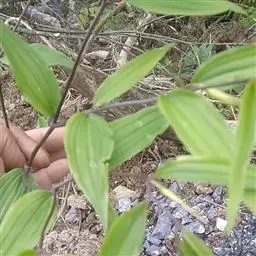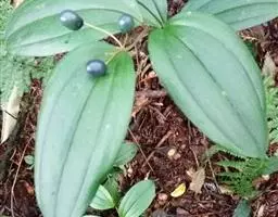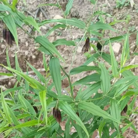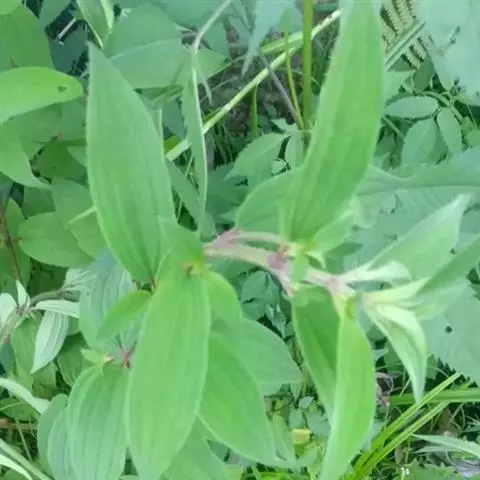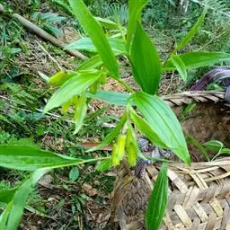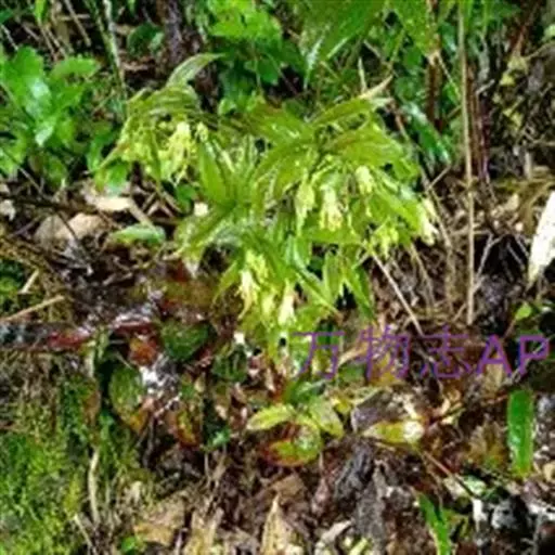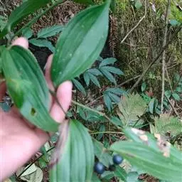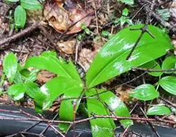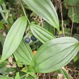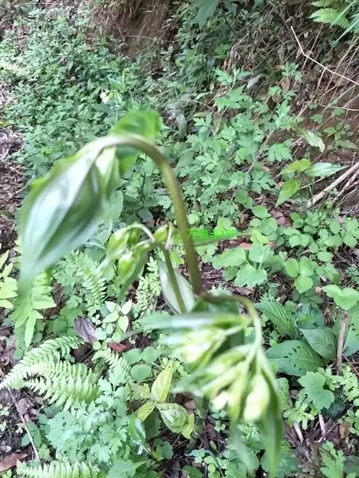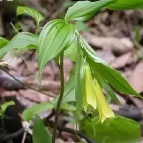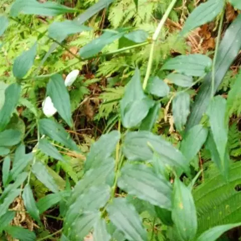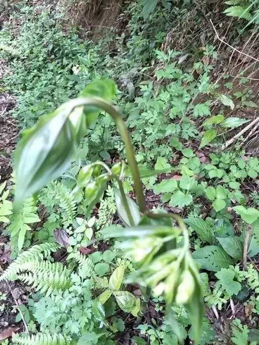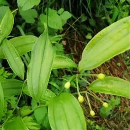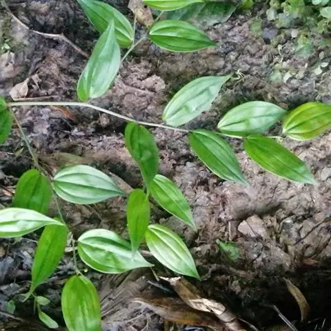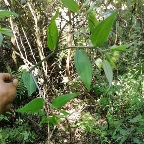 根状茎横出,呈结节状,有残留的茎基和圆盘状疤痕;根肉质,长可达30厘米,粗 1-4毫米,有纵皱纹或细毛,灰黄色。茎高30-70(100)厘米,上部有分枝。叶厚纸质,椭圆形、卵形至卵状披针形,长5-15厘米,宽2-6厘米,先端渐尖至尾状渐尖,下面脉上和边缘稍粗糙,基部近圆形;叶柄长0.5-1厘米。伞形花序有花2-6朵,生于茎和分枝顶端;花梗长1.5-2.5厘米,有乳头状突起;花被片白色或黄绿色,倒卵状披针形,长10-19毫米,先端尖,基部有长1(-2)毫米的短距;花丝等长或稍长于花被片,花药长3毫米,露出于花被外;花柱连同3裂柱头4-5倍长于子房,明显高出花药之上。浆果直径5-10毫米,有3-6颗种子。种子珠形或三角状卵形,直径 3-4毫米,棕色,有细皱纹。花期3-5月,果期6-11月。 [1-2]