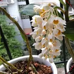 球花石斛,是兰科石斛属的多年生附生草本。茎直立或斜立,圆柱形,粗壮,基部收狭为细圆柱形,不分枝,…
