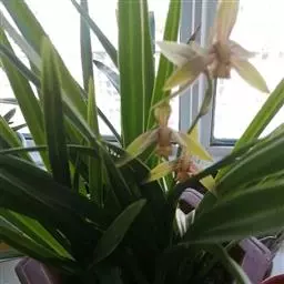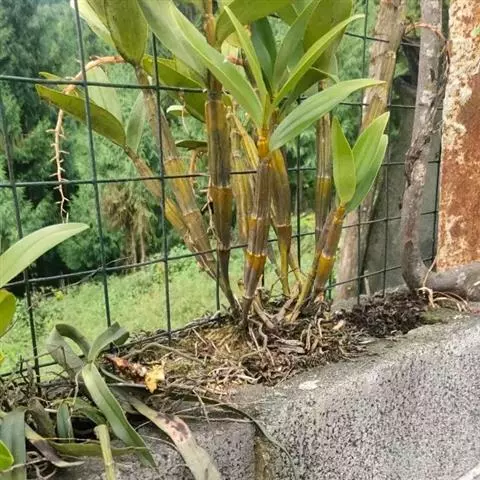 长叶山兰:假鳞茎椭圆形至近球形,有2-3节,外被撕裂成纤维状的鞘。叶2枚,偶有1枚,生于假鳞茎顶端…
