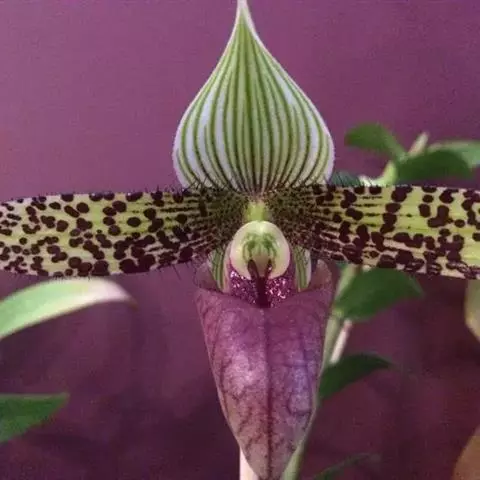 紫纹兜兰 Stein)是兰科兜兰属的地生或半附生植物。叶基生,叶片狭椭圆形或长圆状椭圆形,…
