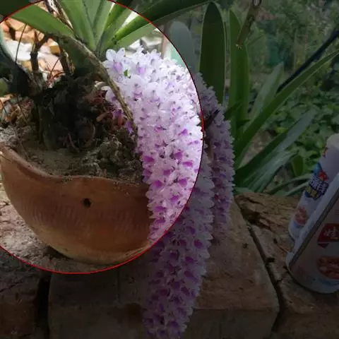 小蓝万代兰:兰科,万代兰属附生草本植物。茎长可达8厘米或更长,叶多少肉质,带状斜立,花序近直立,…