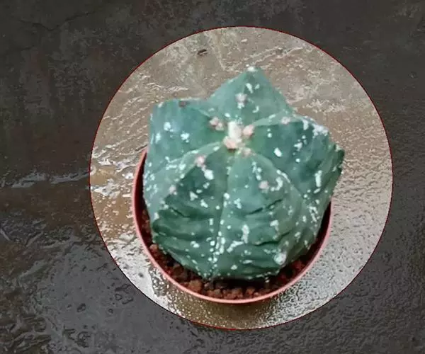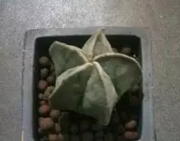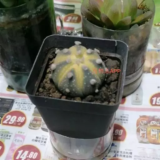 星兜,其拉丁学名为Astrophytum asterias。原产美国南部、墨西哥北部、东北和中部地区。植株呈扁圆球形,直径5~8cm,球体由6~10条浅沟而分成6~10个扁圆棱。无刺,刺座上有白色星状绵毛。花着生于球顶部,漏斗形,黄色或红色,花心红色。