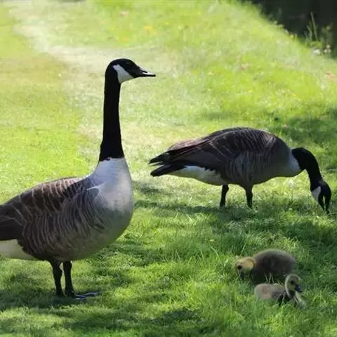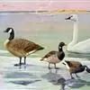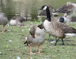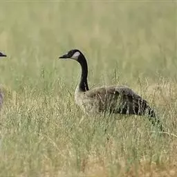 黑雁是雁形目鸭科黑雁属鸟类,又称黑鹅。头、颈、胸、嘴及脚黑褐色;虹膜褐色;背及两翼灰褐色;尾下覆羽白色;胸侧及胁部多近白色纹;颈部两侧各具一个特征性白色横纹,在颈前后断开,未能联成颈环。幼鸟颈部无白斑,而翅上多白色横纹。黑雁繁殖于北美洲、西伯利亚极地的苔原冻土带,越冬于南方沿海的草地及河口。在中国安徽也能见其身影。主要栖息在海湾、海港及河口等地,在冬季里大多出现在有耐碱植物生长的湖泊和水库周围,也出现在周围地势低洼的咸水湖和沿海地区,偶尔还出现在农田地里。性活跃,喜集群,常成群活动和栖息。主要以植物性食物为食。繁殖期在6-8月,雌鸟孵卵,雄鸟通常在距巢100米以内范围内守候警诫。雌鸟孵卵时常将头和颈朝地面平伸出去以降低高度。孵化期为22-28天。黑雁被列入中国林业局2000年8月1日发布的《国家保护的有益的或者有重要经济、科学研究价值的陆生野生动物名