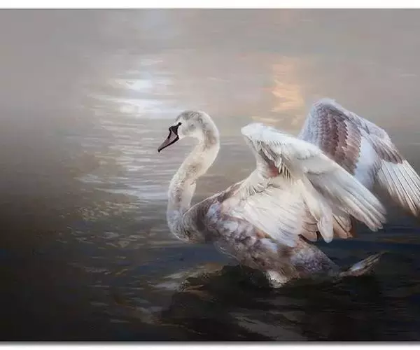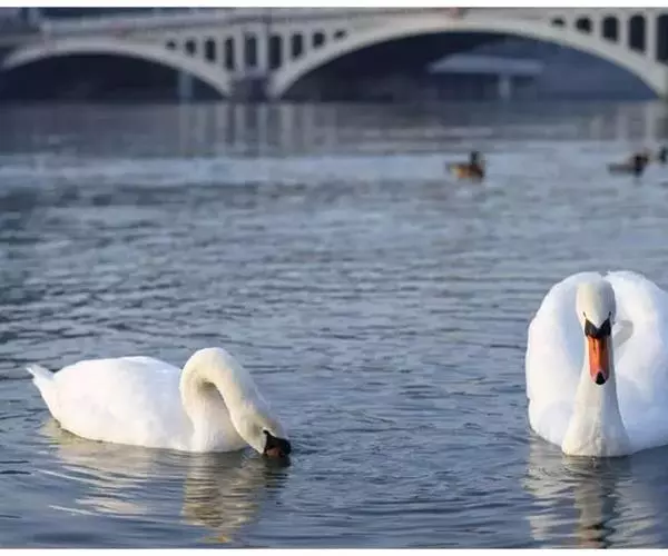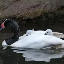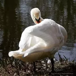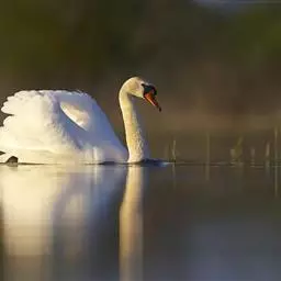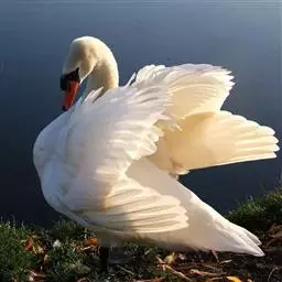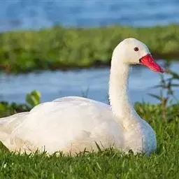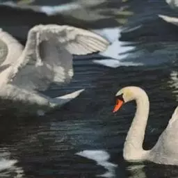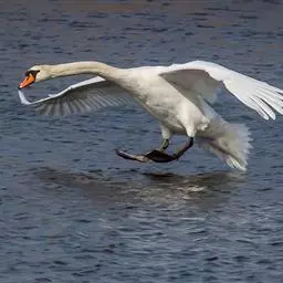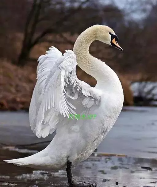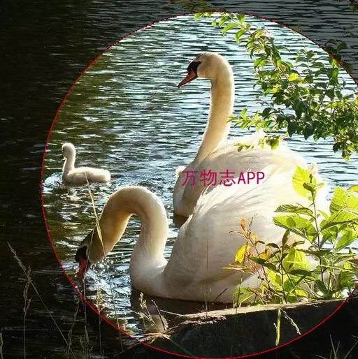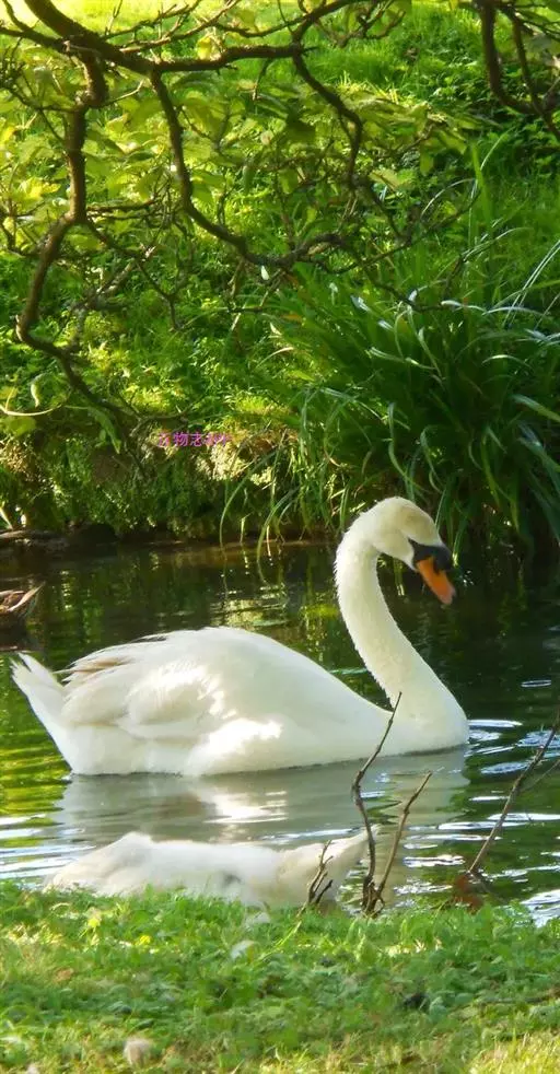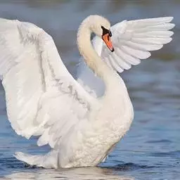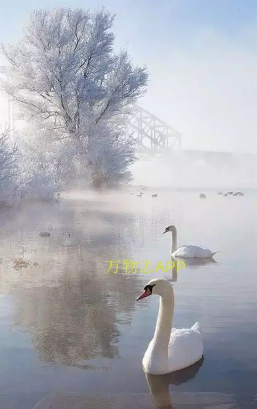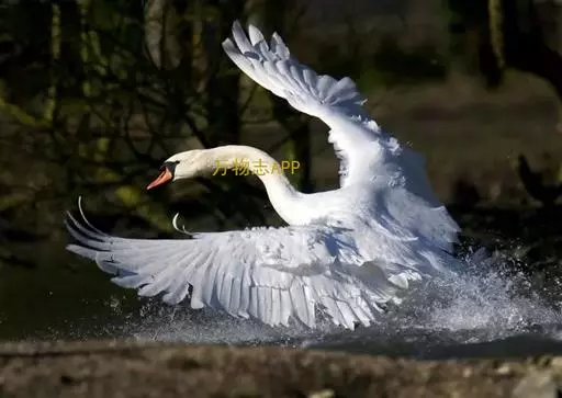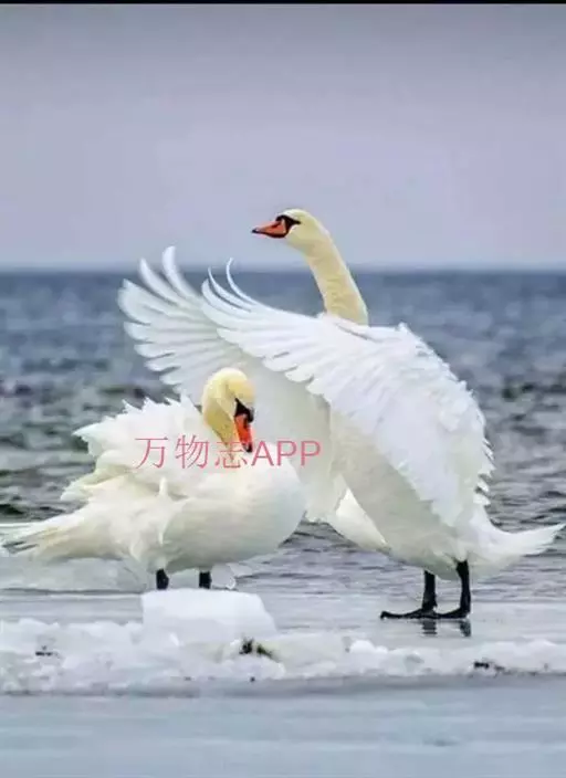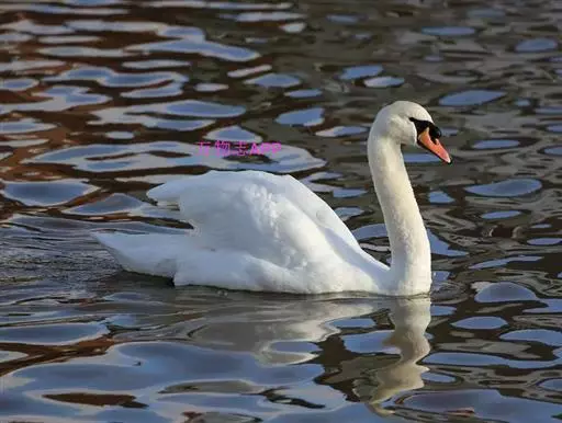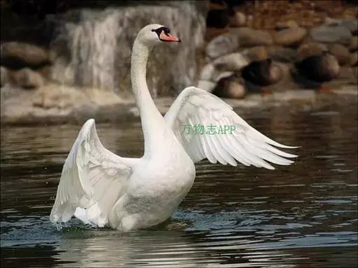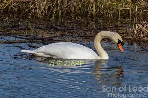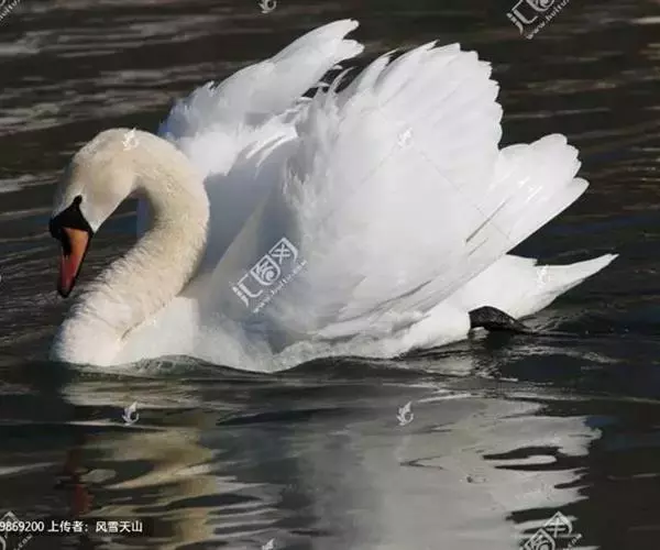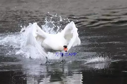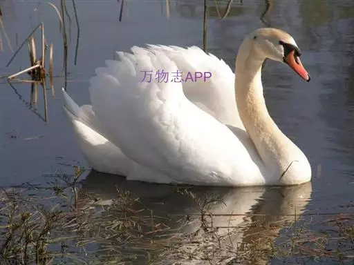 疣鼻天鹅(学名:Cygnus olor):是一种大型的游禽,体长1.2-1.5米,体重6750-10千克。脖颈细长,前额有一块瘤疣的突起,因此得名。全身羽毛洁白。在水中游泳时,颈部弯曲而略似 "S"形。嘴基有明显的球块,且在雄性较大,雌性不很发达。眼深棕色 嘴橙黄色,基部和球块黑色 脚趾和蹼灰黑色。栖息于湖泊、江河或沼泽地带。在地上行走拙笨,但极善游泳。飞行时也将头部伸直,但很少发出叫声,故又得名 “无声天鹅”。