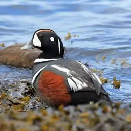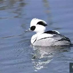 斑头秋沙鸭,是鸭科、斑头秋沙鸭属鸟类。雄鸟眼先和眼周黑色,成块斑状;头部其余部分全为白色。…