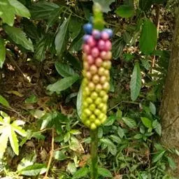 疣柄魔芋 Nicolson)是天南星科、磨芋属多年生草本植物。块茎扁球形或半球形,基部圆形,顶部极宽,…